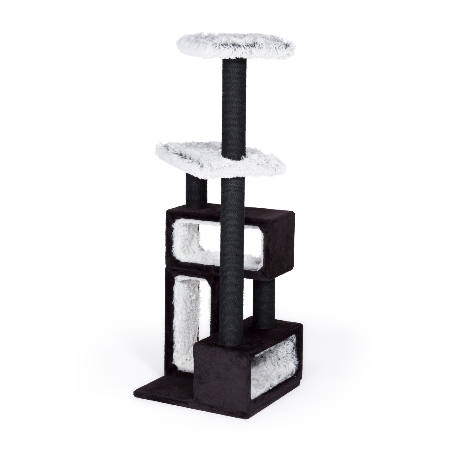 Prevue Pet Products Kitty Power Paws Leopard Terrace 7300 combines plush fabrics with durable jute to provide the perfect place for sleeping, scratching and playing. A luxurious leopard print bolstered day bed is great for surveying surroundings or taking a cat nap. 2 swat toys hang playfully while jute rope scratching posts offer an appealing texture to cats, curbing inappropriate scratching. An additional platform provides opportunities for pouncing and jumping. 20 1/2'' Long, 17 1/2'' Wide and 21'' High.